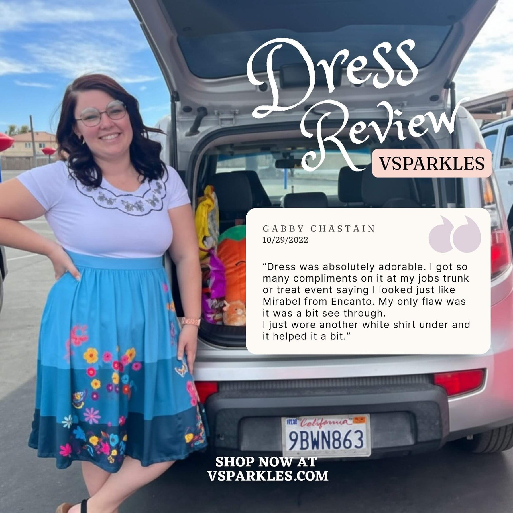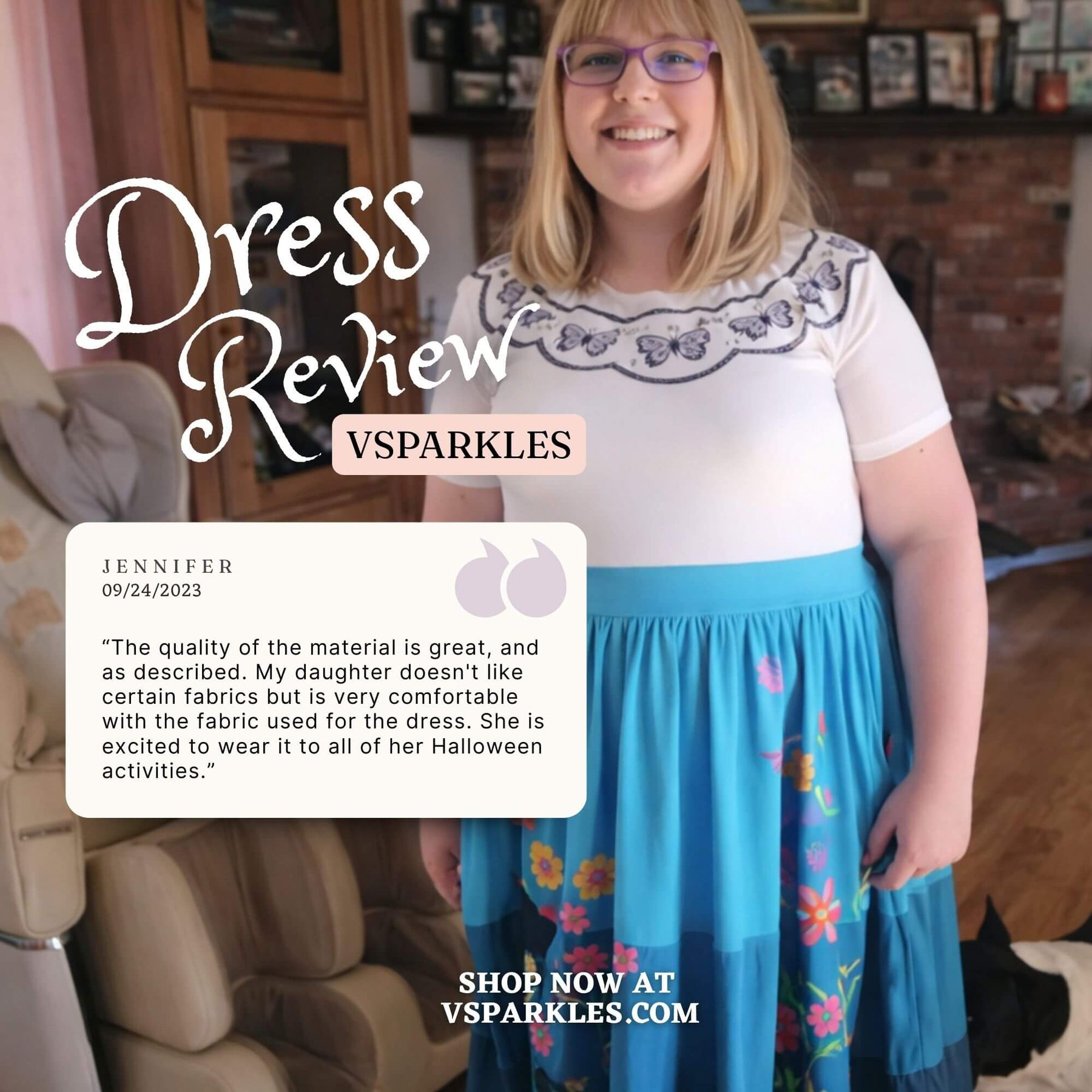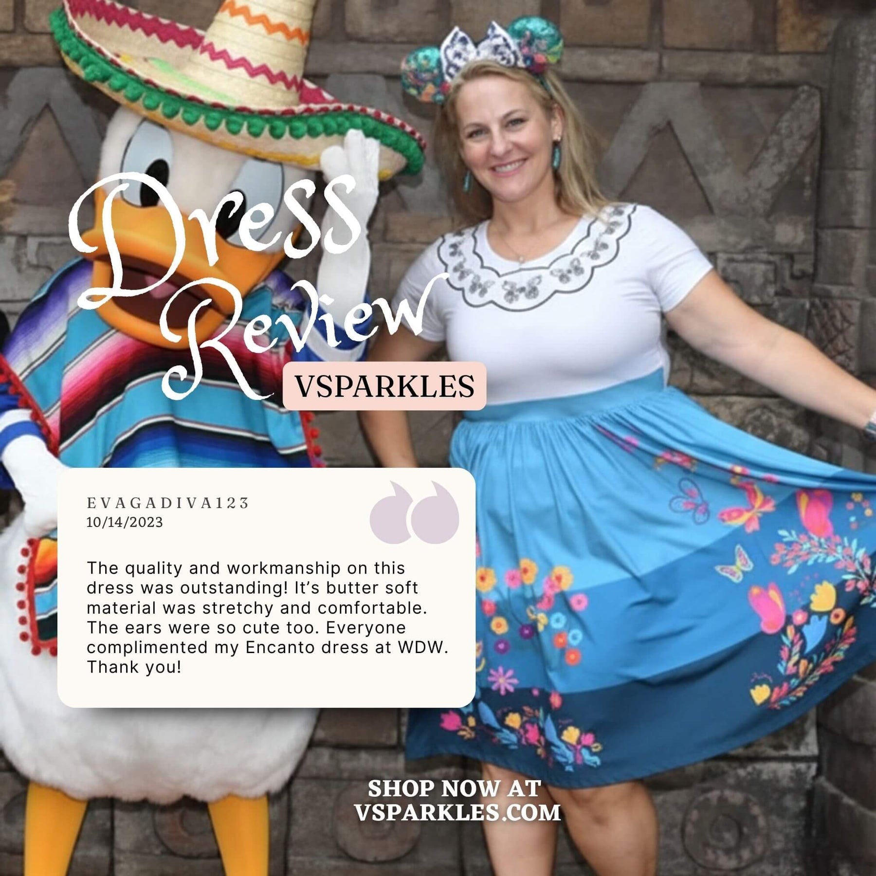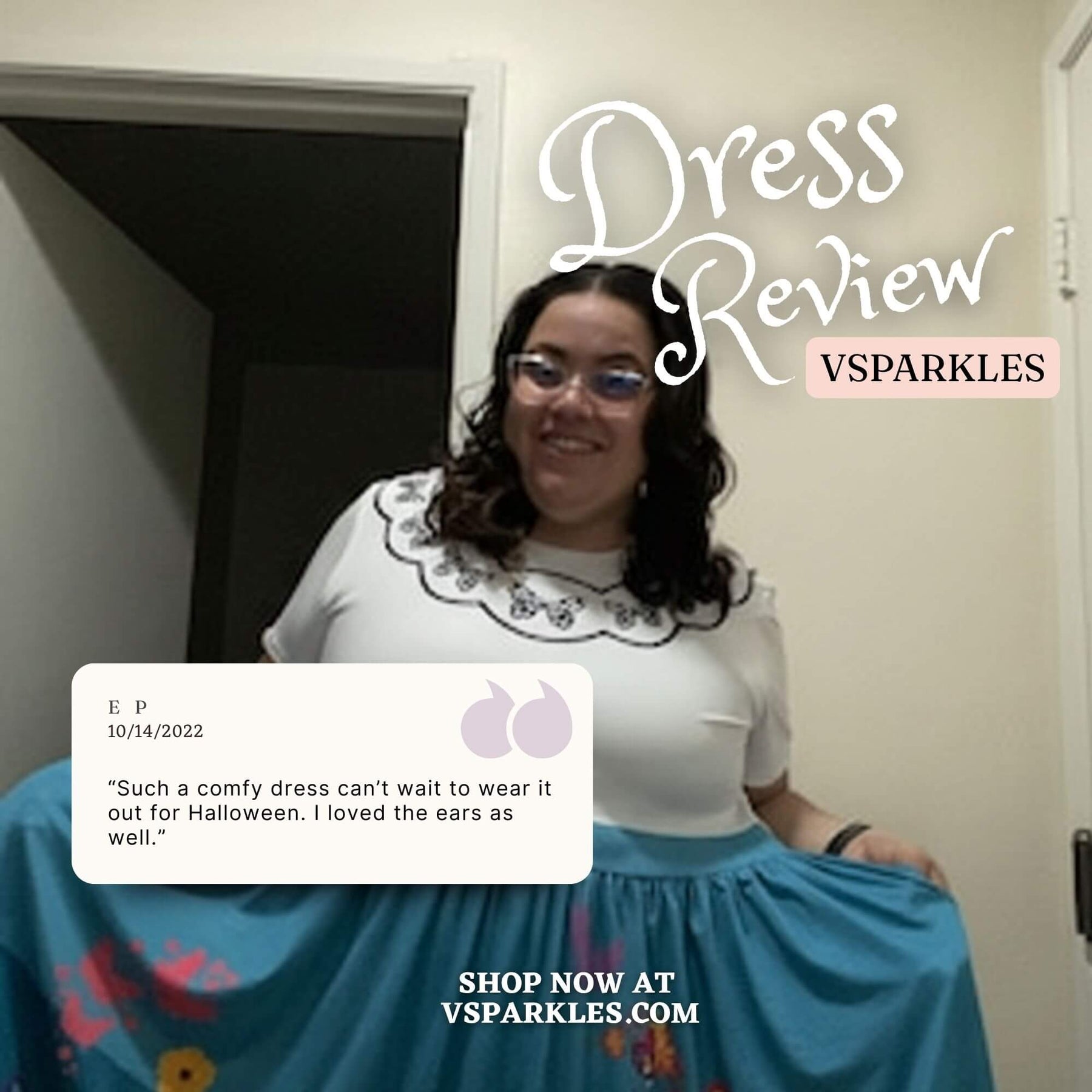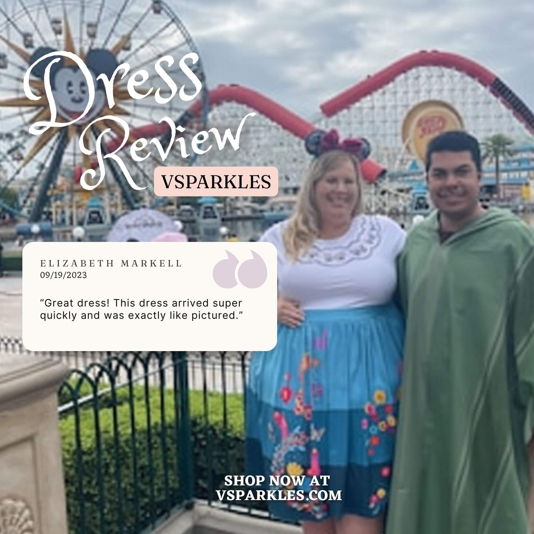 I read the reviews before purchasing this dress. I used the size chart which was recommended by the seller also. The material is super soft as the reviews have said. I love the way it fits, and I look forward to wearing it for Halloween and later to Disneyland!