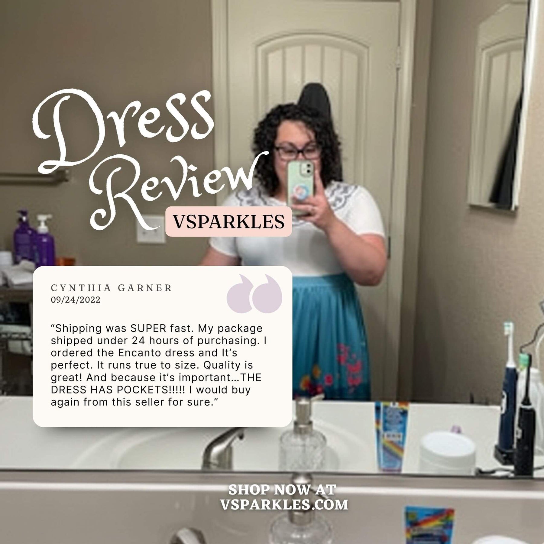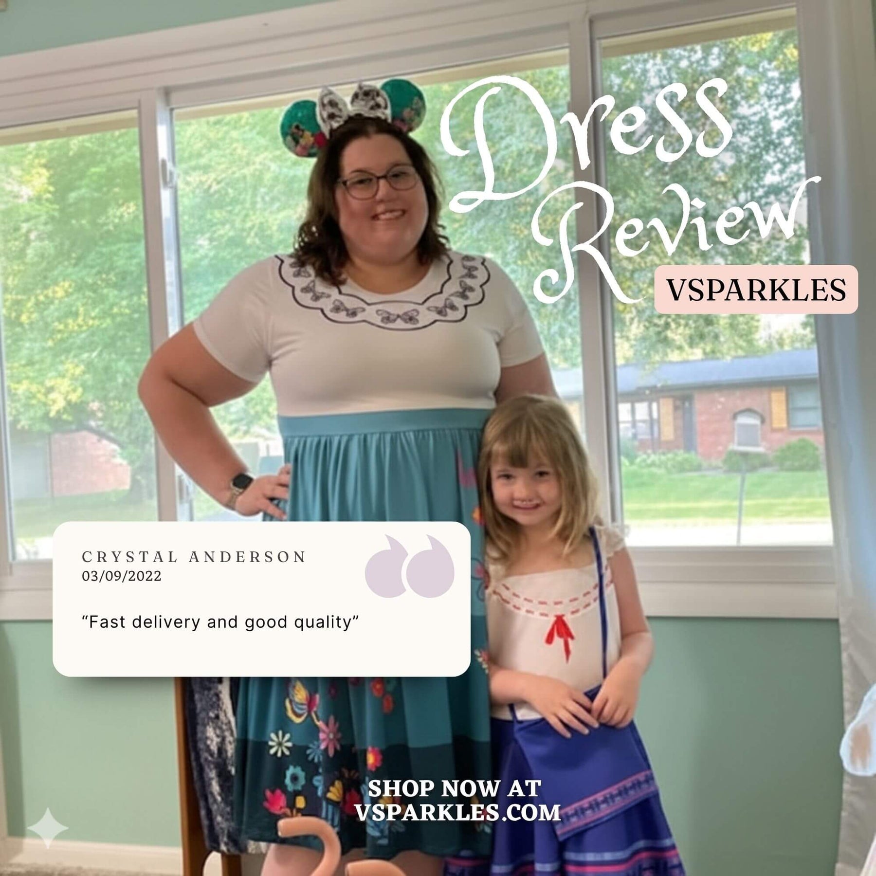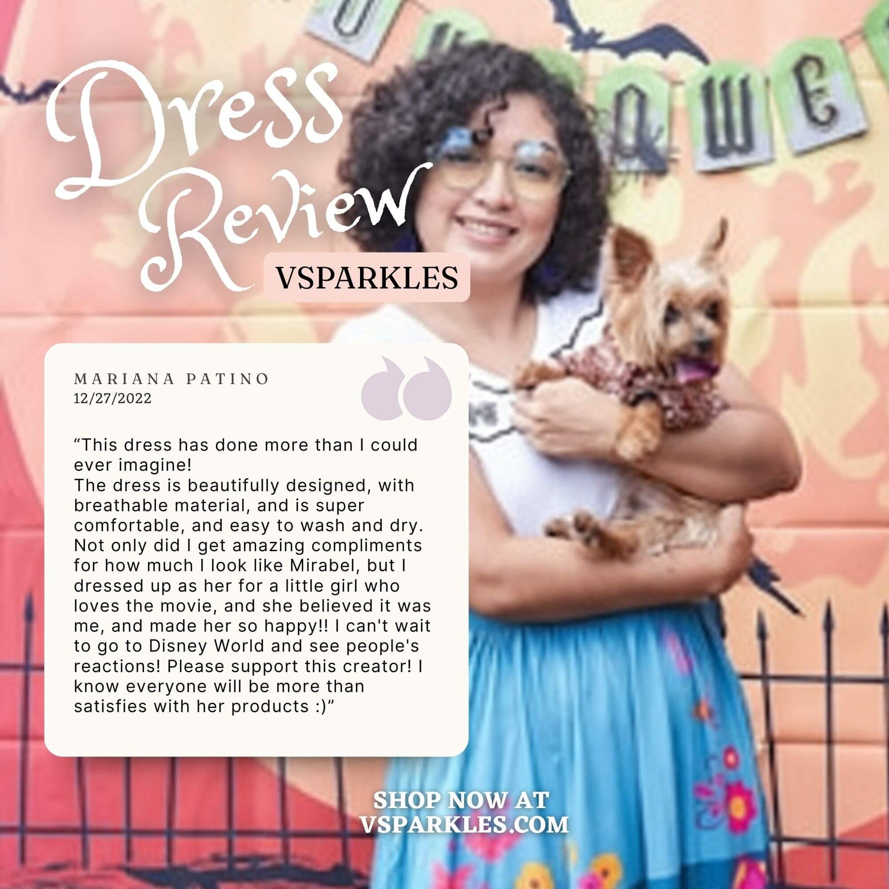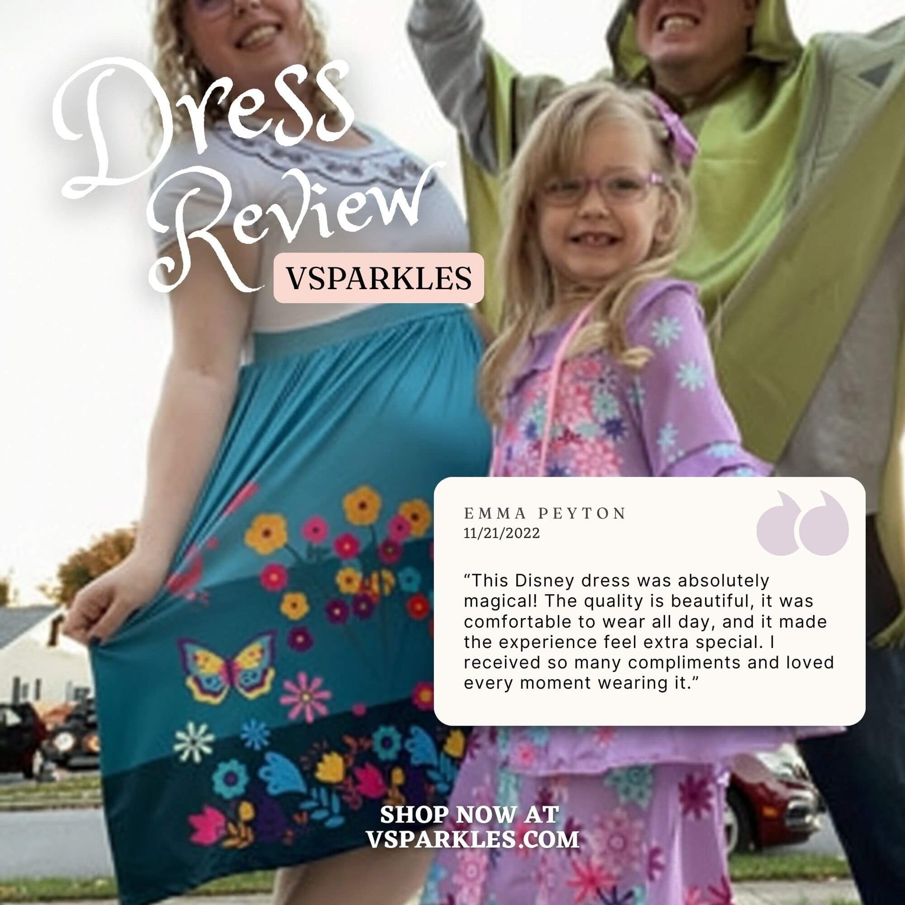 I read the reviews before purchasing this dress. I used the size chart which was recommended by the seller also. The material is super soft as the reviews have said. I love the way it fits, and I look forward to wearing it for Halloween and later to Disneyland!